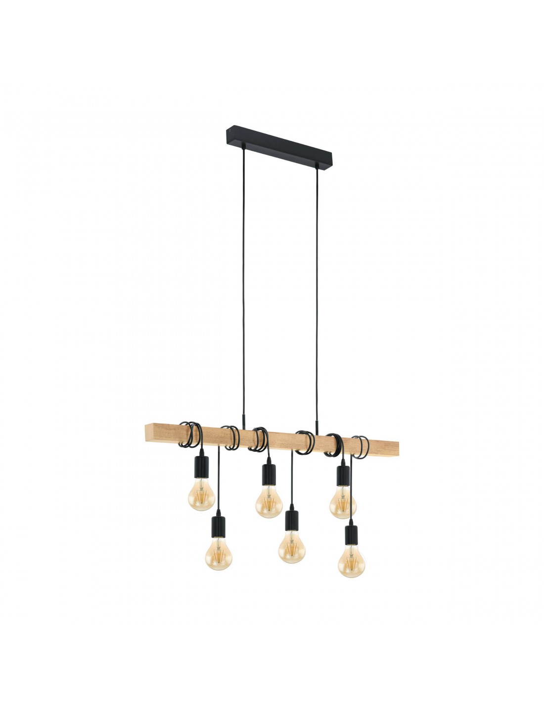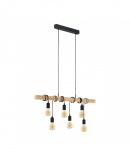 Sospensione Townshend 6 Luci Nero E Legno Naturale L100 cm Eglo