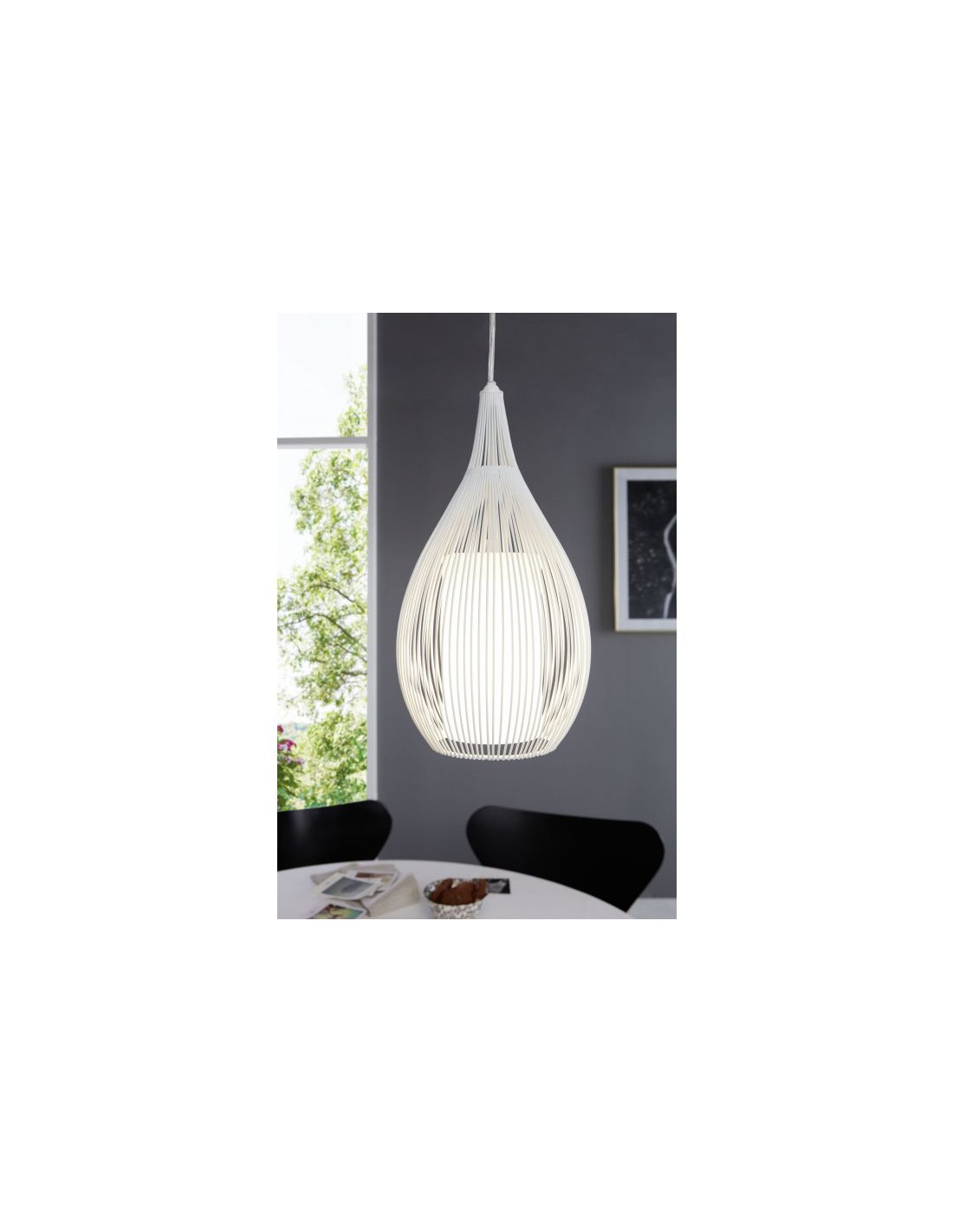 Sospensione Vetro Con Gabbia Metallica Bianco Razoni Eglo