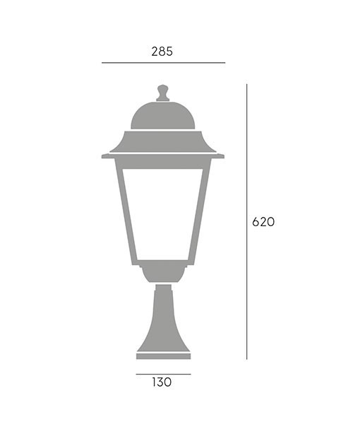 Paletto della serie AMALFI con la struttura in alluminio pressofuso di alta qualità, diffusori in vetro stampato trasparente e la minuteria in acciaio INOX. Il portalampada in ceramica di tipo E27. Sono costruite secondo i criteri della normativa EN 60598-1 CE e successivi aggiornamenti. Completi di base per il fissaggio a pavimento, con contro-base in termoplastico e guarnizione siliconica per un efficacie protezione contro la penetrazione dell’acqua e delle polveri. Le guarnizioni sono presenti anche sul pomello decorativo, mentre i vetri sono dotati di apposito blocca-vetro da fissare sulla gabbia della lanterna per una maggiore resistenza agli urti e per ridurre lo spazio di intrusione degli insetti. Nella confezione è presente una scatola contenente le istruzioni per il corretto montaggio, tasselli per il fissaggio a pavimento e un utilissimo panno in fibra per la pulizia dei vetri oltre che per una corretta manutenzione del prodotto. La verniciatura è garantita da trattamenti specifici appositamente studiati e testati nei nostri laboratori.